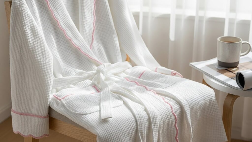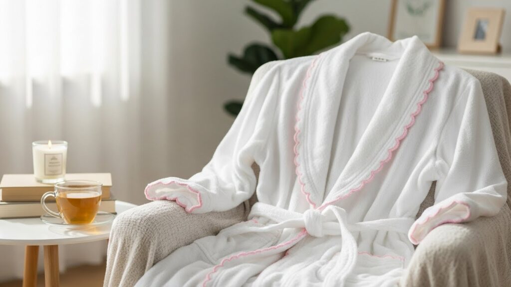 9. Premium Scalloped Bathrobe with Subtle Pink Trim