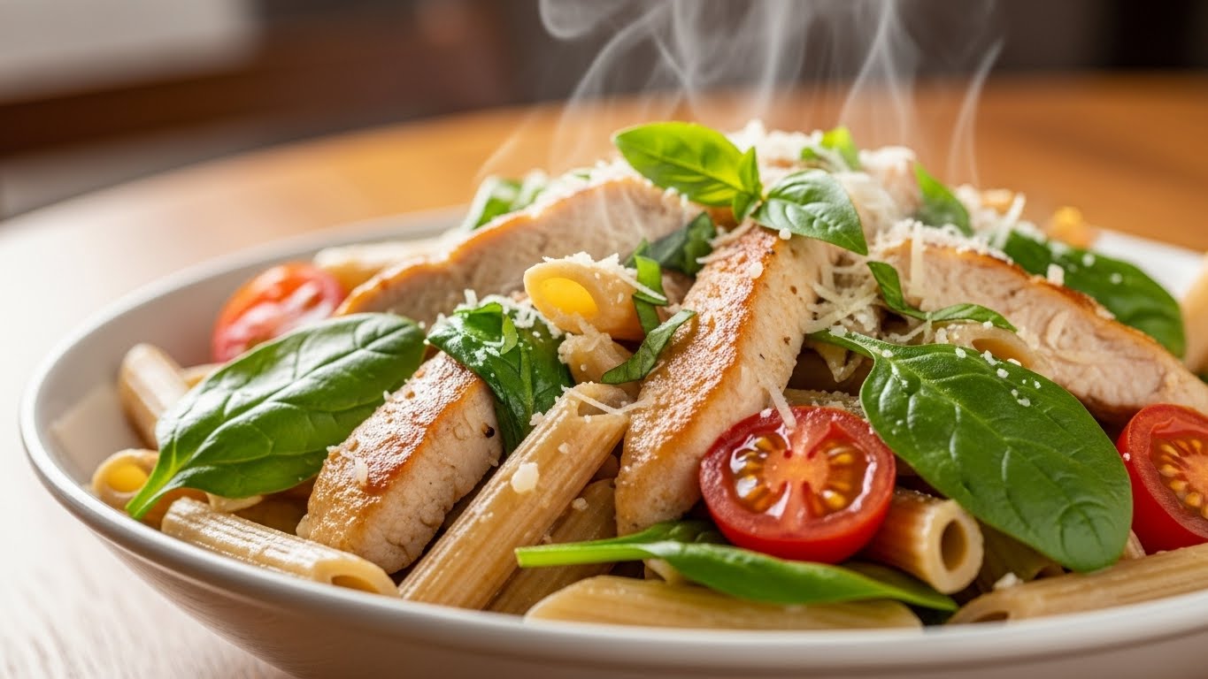 This easy, creamy pasta dish combines tender chicken, whole-wheat pasta, fresh garlic, and light Parmesan sauce for a flavour yet wholesome meal you’ll enjoy anytime!