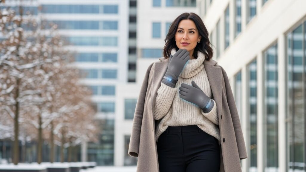 Crafted with breathable yet insulating fabric, these gloves keep your hands warm without feeling bulky. The smart heating system allows for consistent warmth, making them ideal for extended wear during cold weather. Perfect for office work, driving, cycling, or outdoor activities, these gloves combine modern functionality with a stylish, feminine design. They are an excellent winter accessory for women who need warmth without sacrificing mobility.