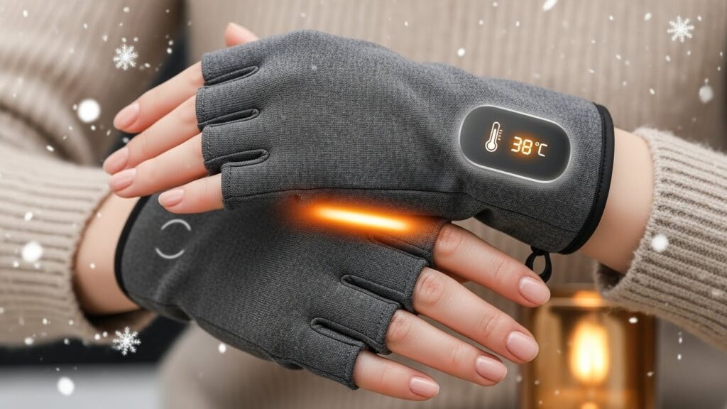 6. Women’s Heated Fingerless Gloves, Smart Electric Rechargeable Winter Hand Warmers